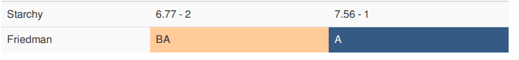 The least square differences were automatically calculated by the software using a Friedman Test (non-parametric test). See Figure 3. This test identifies which yogurts are statistically different in the perception of starchiness.